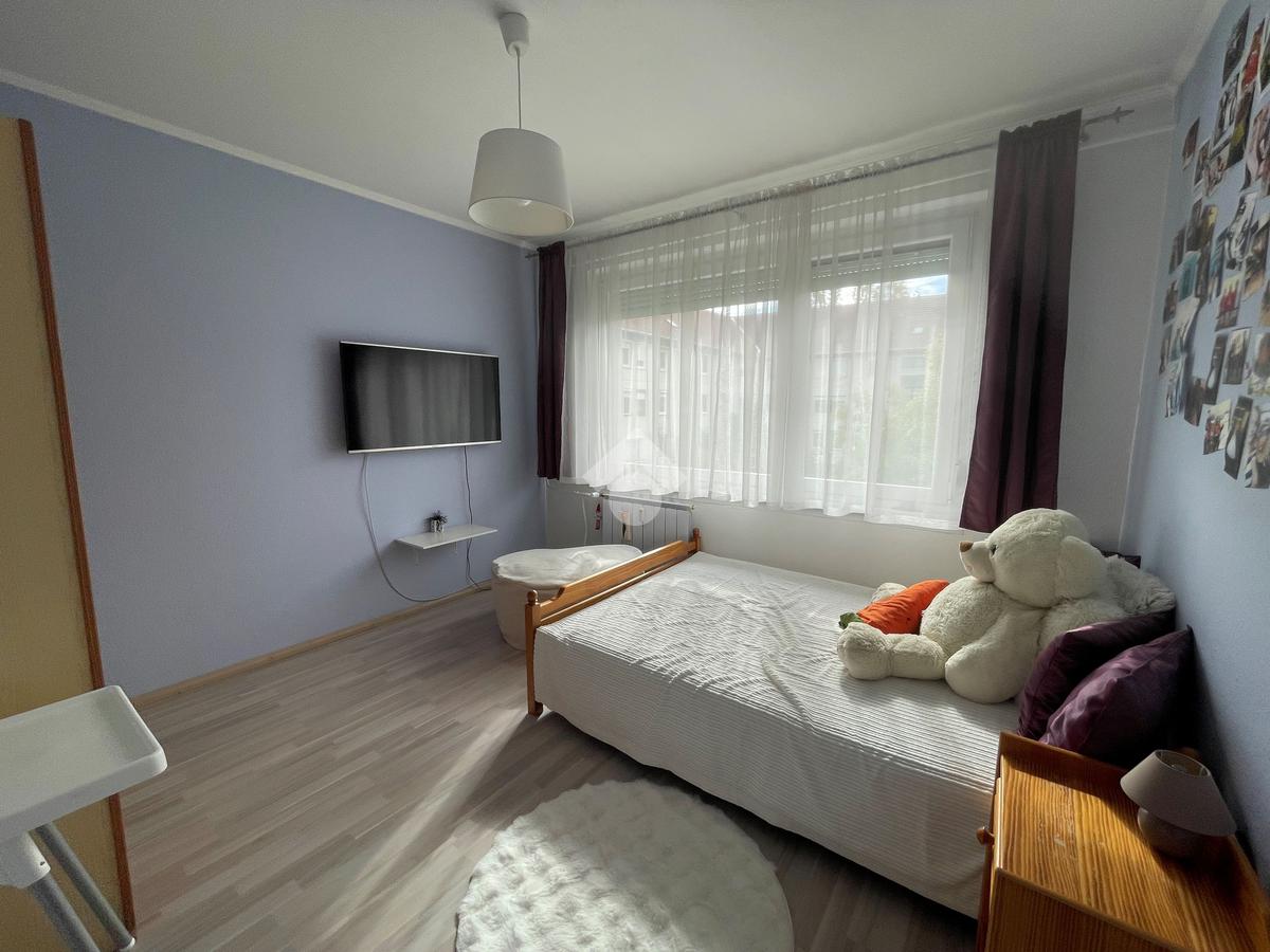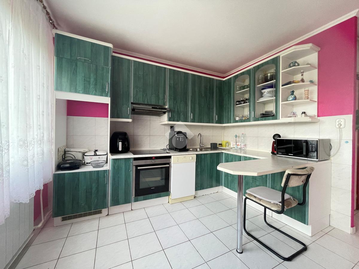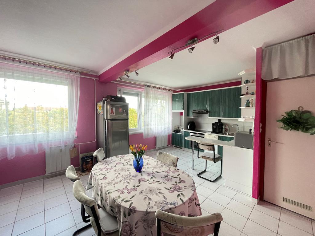 Káposztásmegyer három emeletes cseréptetős társasház III. emeletén, 80nm-es, amerikai konyha + 2+1félszobás lakás eladó, két franciaerkéllyel. Az ingatlan közepes-jó állapotú, a nappali-konyha járólapos, a többi helyiség laminált parkettás. A nyílászárók műanyag thermo üvegesek, redőnyösek, részben szúnyoghálósok. A konyhabútort és a radiátorokat kicserélték, a fürdőszobát és a wc-t újra burkolták, új kádat szereltek be. A bejárati ajtó több ponton záródó biztonsági. A beépített bútorzat a vételár részét képezik. A környék ellátottsága kiváló, iskolák (Babits Mihály Gimnázium, Karinthy Frigyes Magyar- Angol Két Tanítási Nyelvű Általános Iskola), óvodák, sportolási lehetőségek (Jégpalota, Uszoda), számos bevásárlási lehetőségek elérhetőek. 14-es villamos és a 20E busz megállója pár perc sétára található, amellyel Újpest központ metrómegálló rövid időn belül elérhető! A hirdetésben szereplő adatok tájékoztató jellegűek!