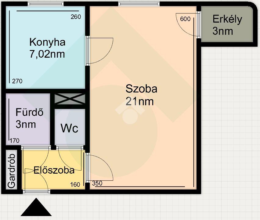 Igény esetén, könnyedén átalakítható 1,5 szobássá, a konyha átfordításával.