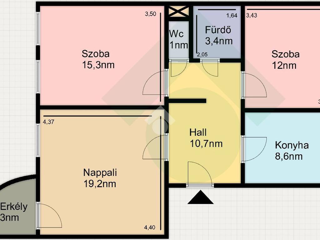 A lakáshoz tartozik egy SAJÁT 2nm-es, illetve 15nm-es közös tároló is a földszinten.